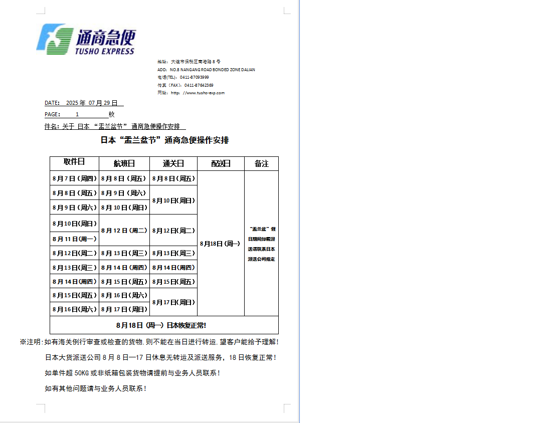 大连通商急便国际物流有限公司 Dalian Tusho Express international Logistics Co.,Ltd.
